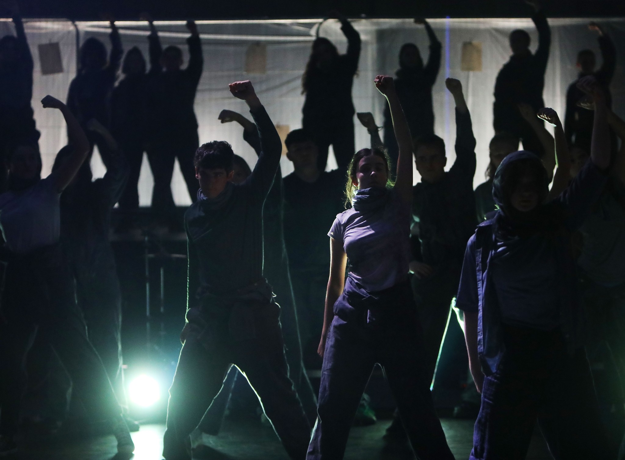 For Zoe, coming to Belfast for Unanimous was the first time she found a like-minded community in Ireland focused on giving young people a voice, a stage, a space to share and collaborate. The simple act, sanctioned by Mags Byrne, Artistic Director of Unanimous, of encouraging the young people to watch the other groups’ rehearsals and performances – rather than waiting backstage – expands their ambitions and ignites creative sparks. Furthermore the experience of working with a tech team, designing costumes, and importantly telling a story all means the Unanimous experience is layered and rich. When Zoe first brought a group to Unanimous they simply presented three hip hop performances. Now the pieces have evolved; exploring more challenging choreography and taking on more complex themes and ideas.