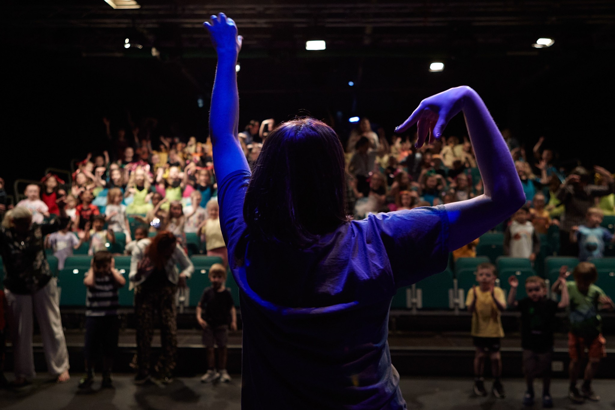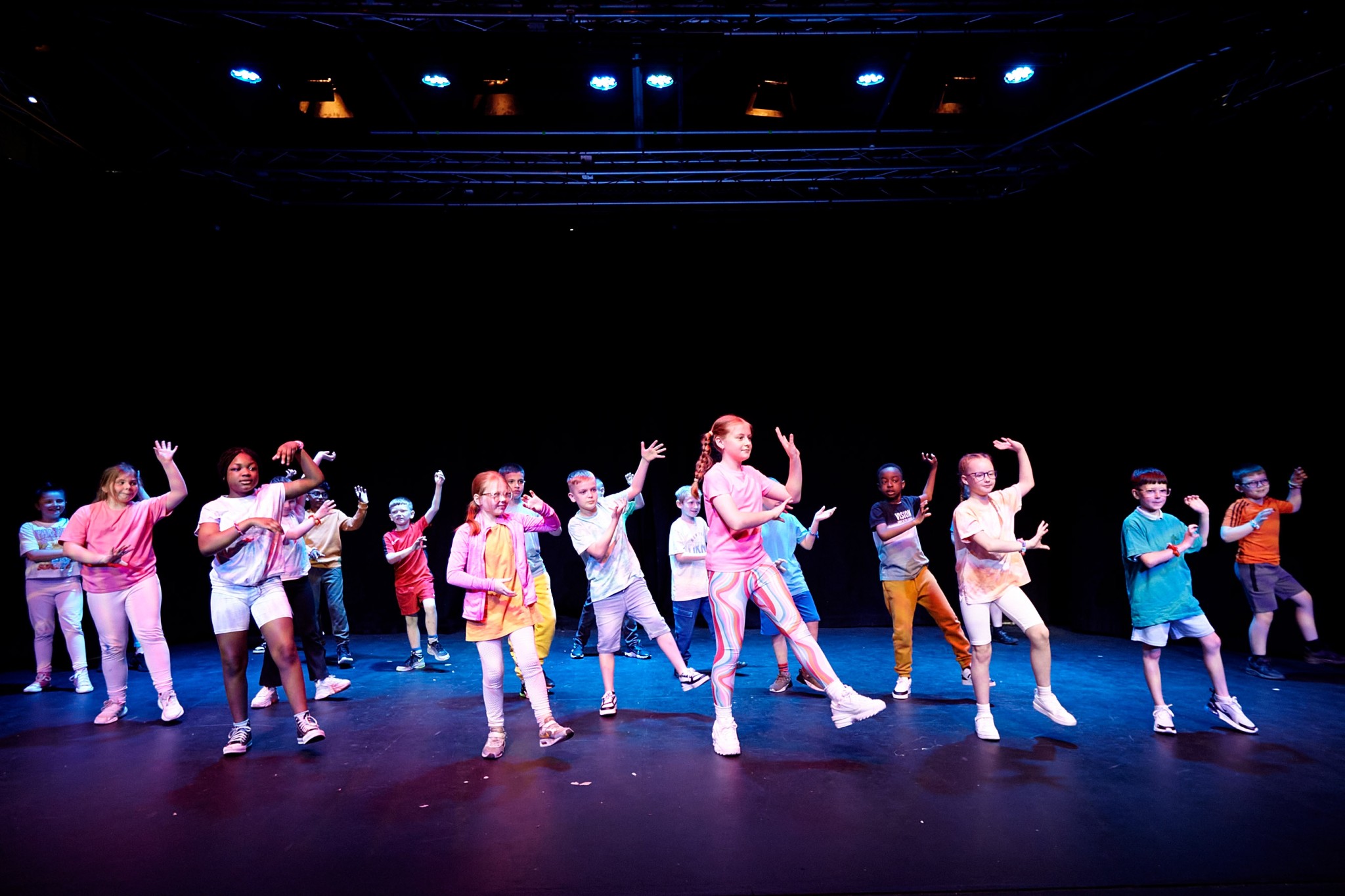 During the morning, all the schools have time to become familiar with the theatre setting and learn the importance of lighting and sound, timing and spacing during their own rehearsal. Then after much needed refreshments (thanks to a donation from Lidl NI) there is time to enjoy dance-themed crafts and outdoor games. Before we know it, it’s SHOWTIME!
